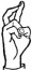 На ћирилици написано АНДЈЕЛИНА КЛЕМЕНОВИЋ састоји се из 19 слова [?]. Исписано ћириличном једноручном азбуком за глувонеме: